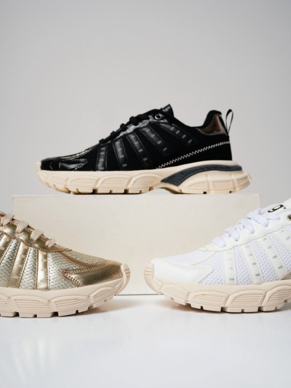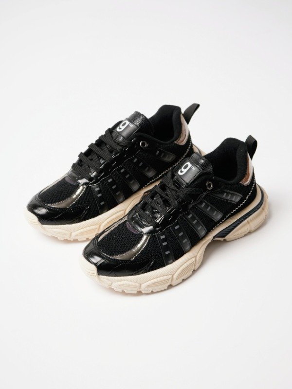 Zapatilla acordonada de tela y cuero veggie brilloso